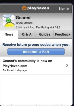 PlayHaven is already testing its communities in-game and online for several apps, including Geared, Minigore and The Quest. In fact, one-third of all Geared players are active on PlayHaven’s community on a daily basis.