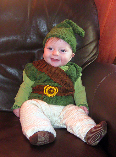 Inspired by this post back in August, I decided to learn how to knit just so I could make this costume of Link from The Legend of Zelda for our 3-month-old son, also named Link. My wife and I finished it just in time today to go to a party with some other new parents. Happy Halloween!
