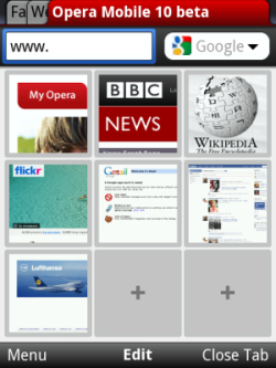 The new Opera Mobile 10 beta features a fresh look that was first introduced with the recent release of Opera Mini 5 beta. The new design also comes with a set of new features like the Speed Dial, bookmarking and tabbed browsing elements Opera desktop browser users have long grown accustomed to as well as a handy password manager. Opera Mobile 10 beta can be downloaded here and is optimized for both touchscreen and keypad-style navigation on Nokia devices and select Sony Ericsson and Samsung smartphones running Symbian/S60.