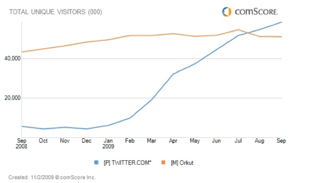 Google’s social network definitely needs a refresh. In September, it attracted 51 million unique visitors across the world, down from 54.5 million in July, according to comScore. Facebook is about six times larger than Orkut worldwide, and even Twitter recently surpassed it with 58.4 million global visitors just to Twitter.com.