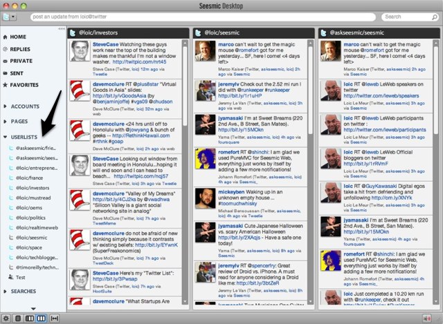 The list feature will also come to Seesmic Web shortly, says Le Meur. He also said that lists took so long to incorporate into the clients because the updated, comprehensive API wasn’t available until a few days ago. Le Meur and his team have scrambled to launch a new version of the desktop client over the weekend and will unveil it to Seesmic members today, and to the general public within the next few days. Other third party sites have also tapped into the Lists API, Listorious, a Lists directory.