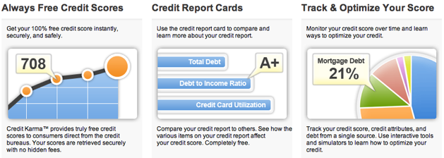 Credit Karma, which launched in March 2008, is a site that features free credit checks, educational guides, and tools for analyzing your credit score’s current status (presented as a ‘report card’) and for optimizing your credit over time (you can check in on your score on a daily basis if you want to). The are also reviews of various credit cards, as well as sponsored offers based on your current credit rating.