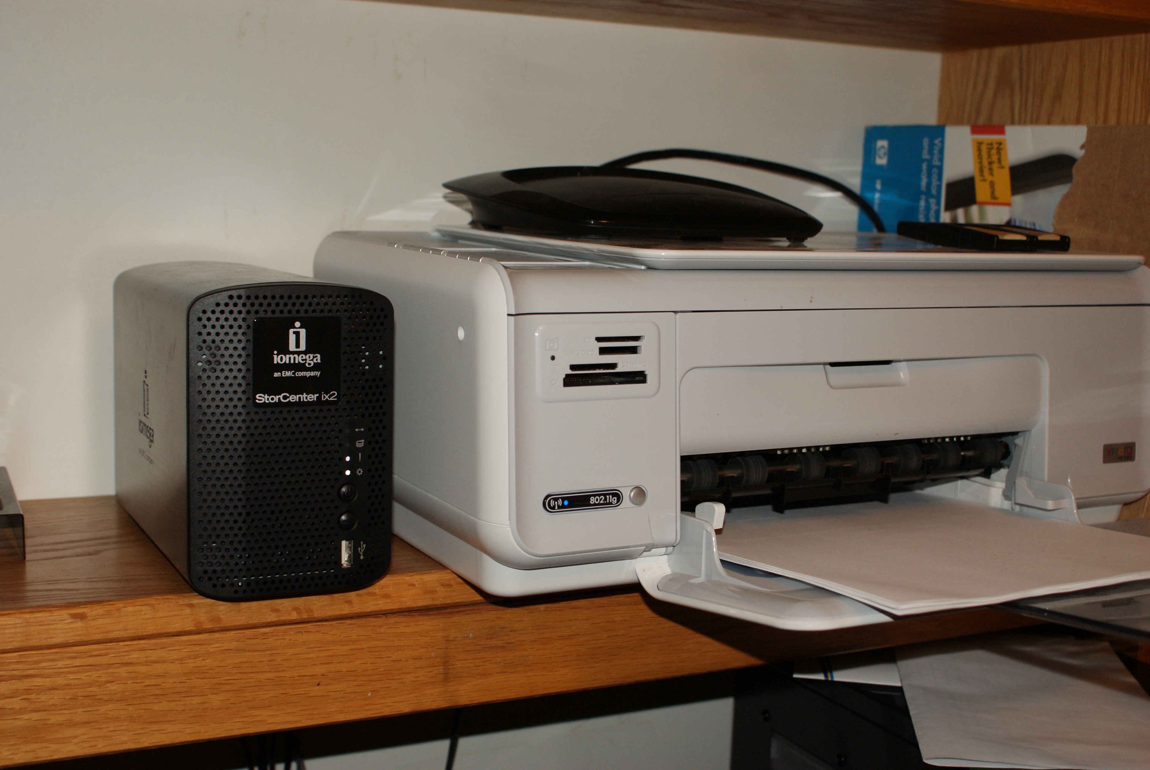 Printers: Just like with external storage devices, you can plug in a standard, wired printer, and the ix2 magically makes it wireless! No way! Or at least available to the network. Plugged in my HP Photosmart, worked like a charm.