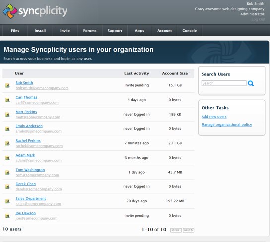 Features of Syncplicity’s new service include the ability to allows users access to files from any device as well as web applications no matter where the files were first saved and real-rime backup. Syncplicity’s business edition also gives admins central file management to have control over data both inside and outside the corporate firewall. Similar to other syncing services, Syncplicity is easily scalable in terms of storage and number of users.