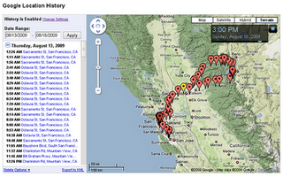 Google Latitude just turned on Location History as a new feature in Google Latitude. Whenever Google Latitude is on, it records your location, and you can go back to see where you’ve been. To mitigate some of the obvious privacy issues this brings up, only you can see your location history, not your friends. And you can delete any location from your history, like that Dunkin Donuts you tried to stick up last night when you had the munchies.