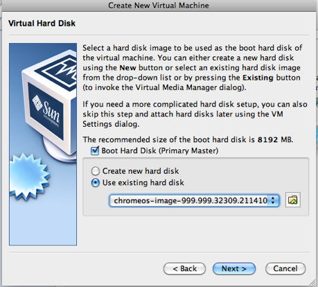 Almost there. Make sure ‘use existing hard disk’ is checked. Hit next.