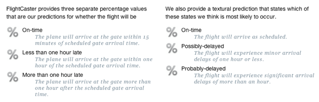 Back when I first wrote about the startup, I questioned how helpful knowing about a delay in advance really was. After all, FlightCaster’s notifications state that a flight will probably be delayed. But sometimes they’re not, so it isn’t wise to show up at the airport a few hours late. Freedman says the FlightCaster team had the same concerns, but that there are two discrete sets of users who value the service. The first group of users (which is where most people fall) just like having a heads up that their flight is delayed, mostly so that they can warn friends and co-workers that they might be late.