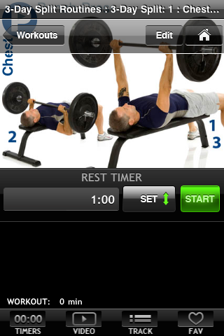 FitnessBuilder offers [$9.99] 500 little workouts for you and allows you to stick to them by forcing you to record and possibly report them to friends when you’re done. You open the app, select a work out – there are a number of sets for various workouts including shorter sets for busy folks – and then you can record your reps and weight for posterity.