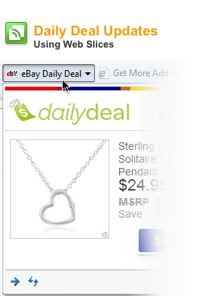 In time for Black Friday, Microsoft and eBay are partnering to offer eBay Daily Deals to Internet Explorer 8 users directly from the browser. Via a Internet Explorer Web Slice, Microsoft will offer users the best “Daily Deals” from eBay from within the browser.