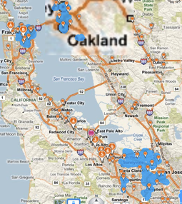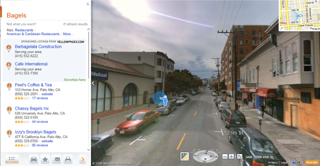 Unfortunately, you’ll find that Streetside isn’t nearly as comprehensive as Google Maps — I just tried to take use it in Palo Alto (where TechCrunch HQ is located) and the option wasn’t available. Here’s a map showing how much of the Bay Area is covered by Streetside: