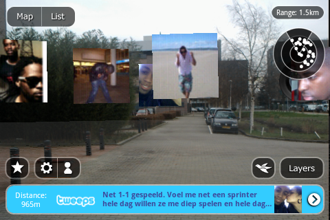And of course there is also a Twitter app which shows nearby Tweets, along with the avatars of the people who Tweeted them (at least I think that’s what it shows).