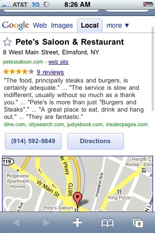 In the near future, Google Maps on mobile phones will also start including businesses as points of interest. Google calls these “smart maps” internally. As the businesses are added, they are clickable, and their Places page pops up.