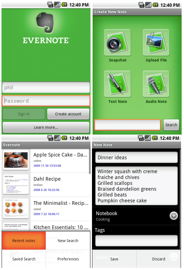 Any note users create in the desktop or web versions of Evernote will be instantly accessible from their Android phones thanks to the app’s native synchronization capabilities, and a note browsing feature enables users to browse and search through all of their notes. Evernote for Android is also able to capture a user’s location whenever he or she creates a note, and enables them to find notes based on proximity to their current location.