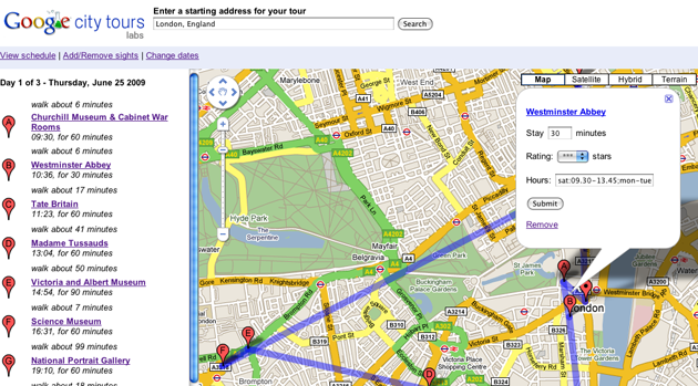 Last summer, we wrote about the launch of a new service from Google called City Tours that marked the search giant’s first foray into the travel space. The service isn’t exactly flashy, but it’s quite practical: tell it what city you’re visiting, and it can generate an optimized travel itinerary featuring a number of landmarks within walking distance. Unfortunately it had a few shortcomings. For one, its directions were all based on distances “as the bird flies”. In other words, it was up to you to figure out the best way to navigate between these landmarks, because Travel Tours would sometimes direct you to walk directly across a river.