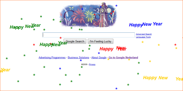 Today, Google has flipped the switch on its New Years surprise. No, it isn’t an amazing new free web service. Instead, it’s a cheesy digital fireworks display that overlays the classic Google homepage with multicolored stars and ‘Happy New Year’ banners dancing across the screen. I can’t help but be slightly let down, but then again, it’s only five more days until the rumored launch of the Nexus One. And it is kind of funny.