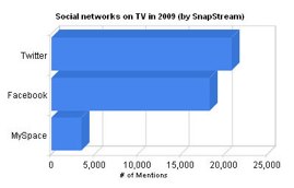 Snapstream, a startup that makes a device that lets enterprises record thousands of hours of TV (from both satellite and digital cable sources) and search inside the recordings for keywords, recently launched a trending topics site for TV. Snapstream has released its top trends on TV for 2009, with the mention of “Twitter” used more often than Facebook, MySpace and other social media platforms. .