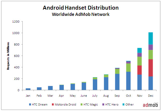 - Droid Invasion: The Motorola Droid is already the leading Android handset in the AdMob network and generated 30% of requests in December.