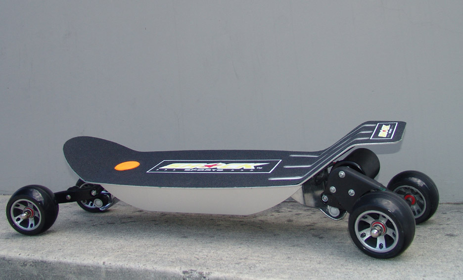 My buddy Paul just bought this odd $229 motorized skateboard – you know, for kids. It apparently runs at 12 miles an hour and can support an adult up to 250 pounds. I’ve never seen these – it seems like they’re the logical follow-up to the pocket bike craze.