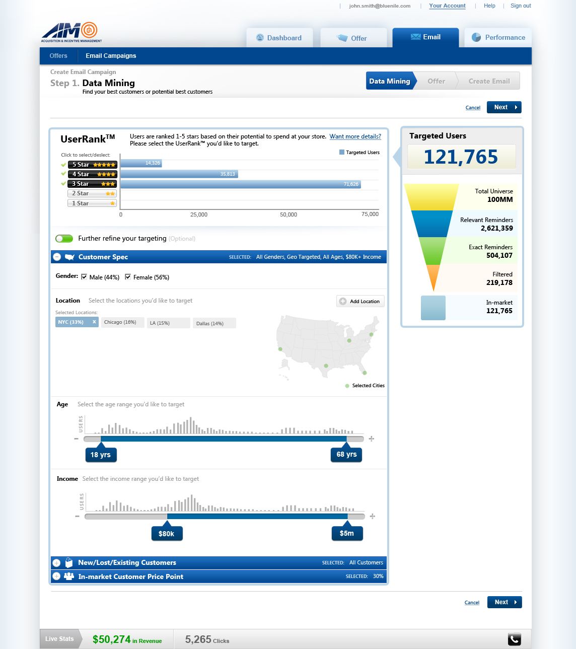 Next Jump wants to match the best deals with the best shoppers. “Shopping and advertisng has always been the same to us,” says Kim. “Merchants are trying to connect with users and users are trying to connect with advertisers. It is a two sided problem.” Next Jump creates algorithms to reward not only good shoppers, but also good deals. Every time an opt-in offer email goes out, Next Jump measures the response rate. If someone stops responding that merchant is quarantined from that consumer. If the offers turn into spam, then everybody loses.