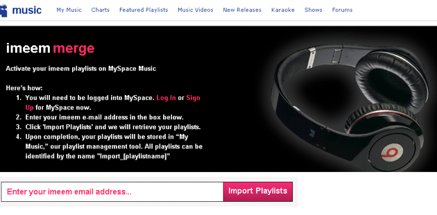 Last month, MySpace finally completed its deal to acquire troubled music startup Imeem. Unfortunately for imeem fans, the bank shut the service down as soon as the deal was completed, redirecting them to a MySpace Music splash screen. MySpace was subsequently trashed by outraged users who wanted their playlists back. Today, they’re getting what they asked for: MySpace has just sent out an Email to imeem users, informing them that they’ll be able to restore their playlists using a new import tool. We’ve confirmed with MySpace that the feature is now live.