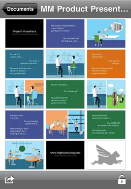But unlike a standard file sharing service, the link you send from MightyMeeting isn’t just a link to the file — it’s actually a link to a presentation that you can control remotely. Clicking the link brings the attendee to a browser-based viewing window on their PC or mobile phone. Then, when you flip to the next slide on your phone, the change will be made on the screens of everyone else in the presentation. You can use a simultaneous voice call to communicate, or an integrated chat function. You can conduct the presentation from either 3G or a Wi-Fi network. And if you want your presentation to go viral for some reason, you can share it with Twitter and Facebook directly from your app.