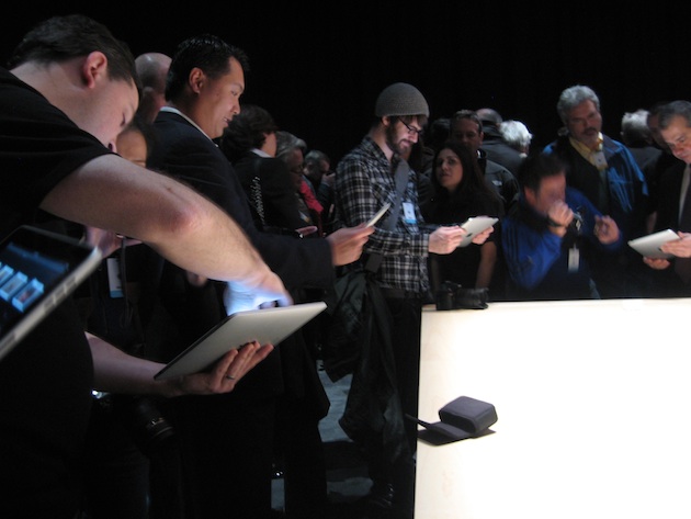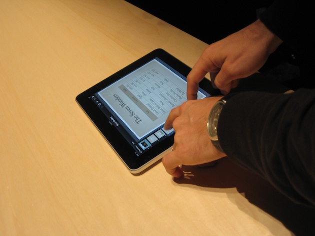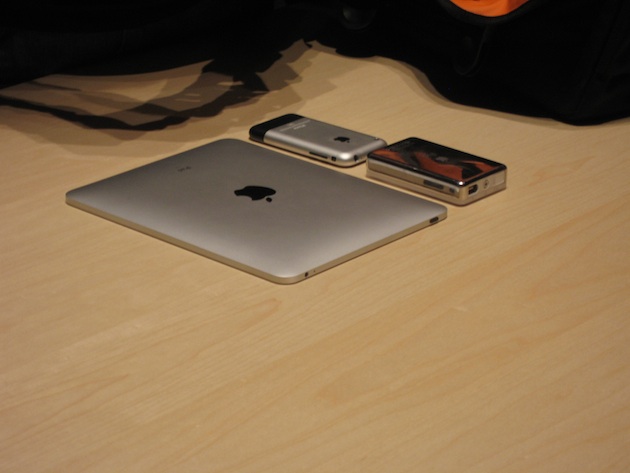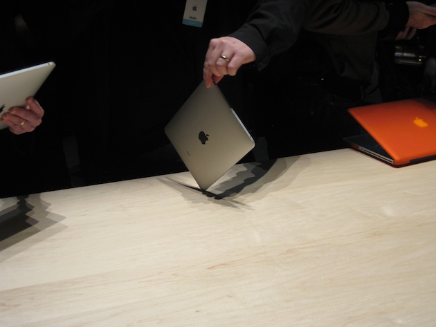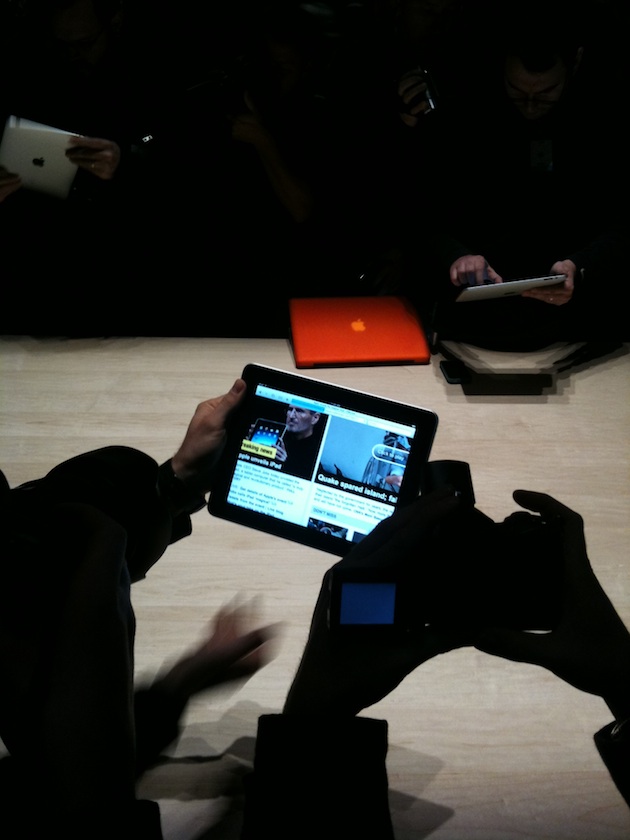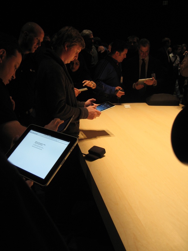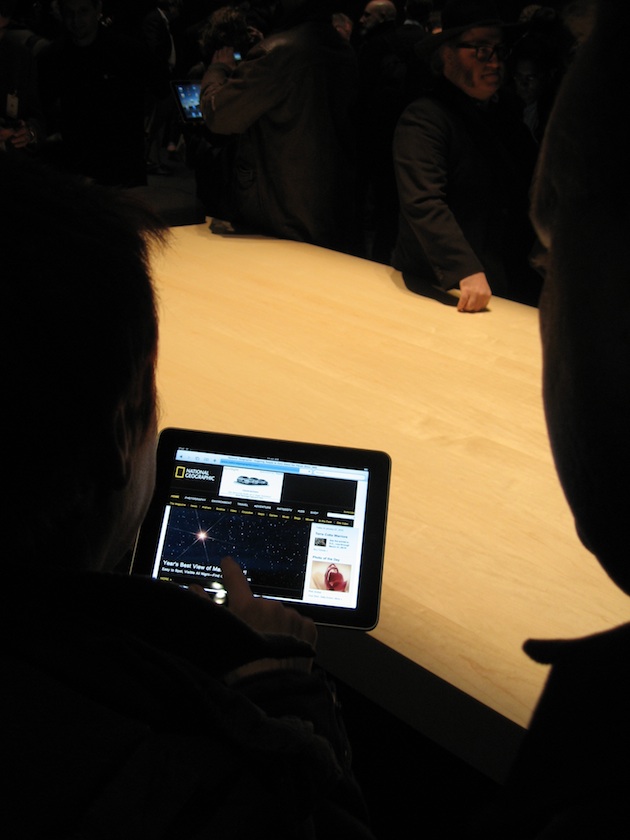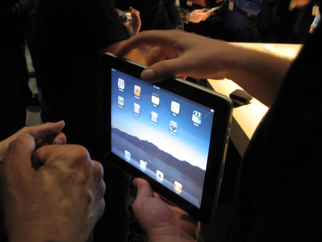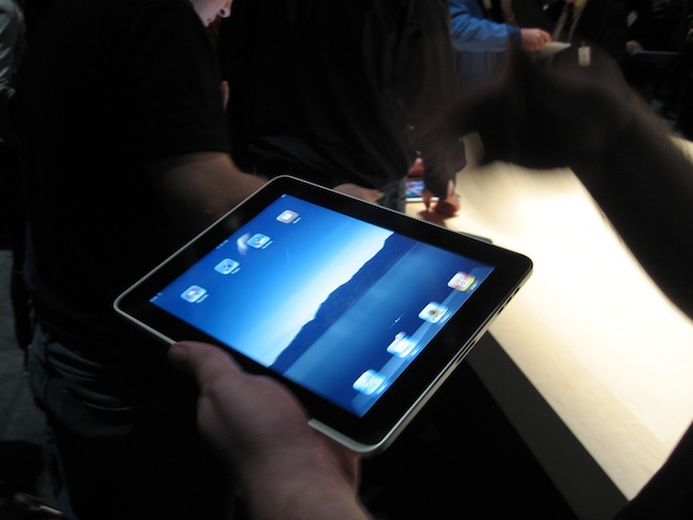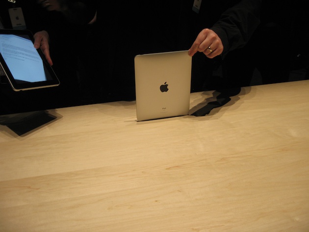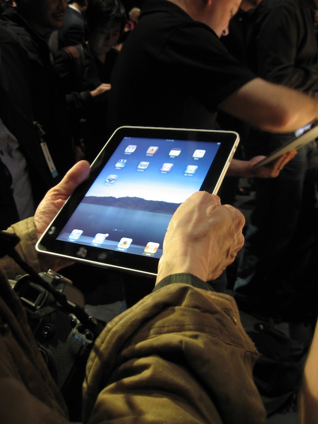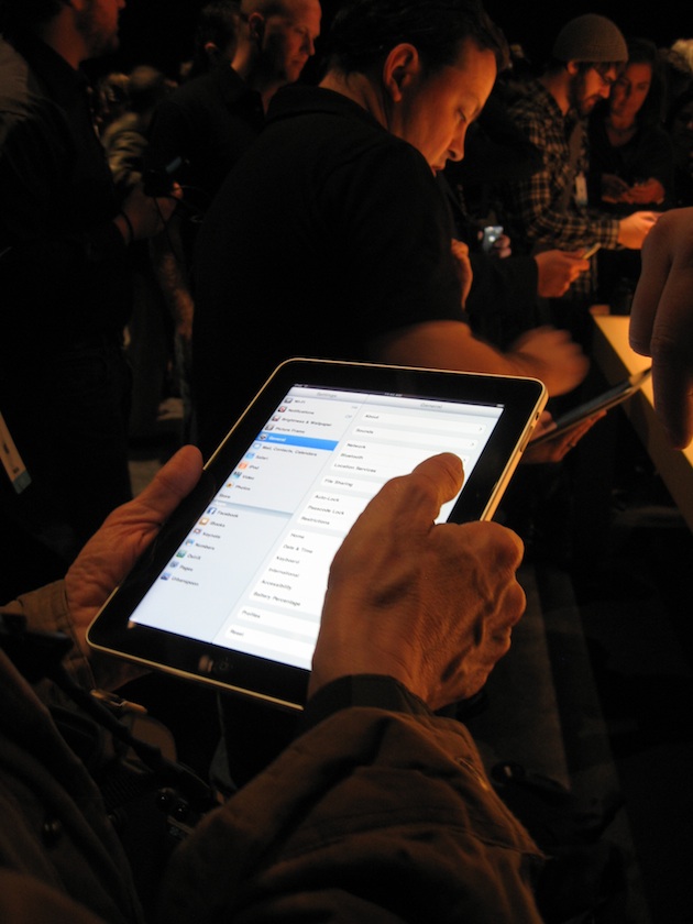 Okay, we’ve all seen the iPad now. We’ve read all about it. We’ve seen video of it in action. But how is it to actually hold? I took a bunch of pictures of people playing with it in the demo pit today after Apple’s event. The consensus amongst those I talked to? It’s actually quite comfortable.