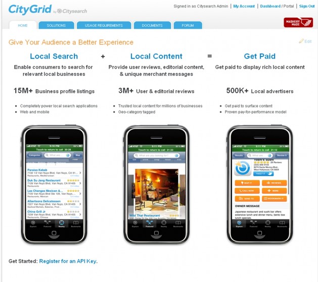 Many of the ads come from other local advertising sites as well, such as Superpages, Yodel, Spafinder, and limos.com. In that case each advertising dollar is split three ways. But ever since Citysearch opened up to those 100 partners, it went from 150,000 paid listings on its own site to 500,000 across its network. “My goal is to get to one million,” says Herratti. Now that it is an open API, he might just reach that goal. Developer who sign up for the API can create local directories on a self-serve basis and will start getting paid once they meet a minimum threshold of ad impressions or actions.