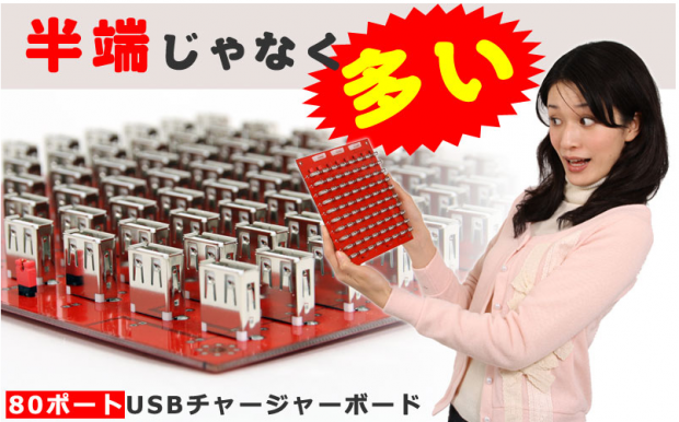 Most of Tokyo-based Thanko’s USB accesories are utterly useless, but I don’t know what to think of their latest creation, a 80-port USB board [JP]. Yes, they put 80 USB ports on one board. You can’t transfer data over the ports but only charge your gadgets though, it’s not a USB hub.