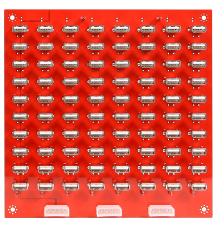 The board is sized at 200×200×19mm and obviously needs to be plugged into a wall socket to work (100V). The picture below shows it with just 40 of the 80 ports used.