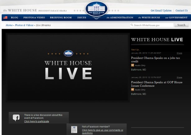 The White House had a live stream of the speech that was embeddable on blogs or websites. Nearly 1.3 million people tuned into the WhiteHouse.gov’s live video feed of the speech, which is a ten-fold increase in traffic over the most popular live-streamed event. Unfortunately, the White House doesn’t have any concrete statistics on the number of unique streams of the speech from the new iPhone App, but says that nearly a terabyte of data was served to iPhones with the application during the event.