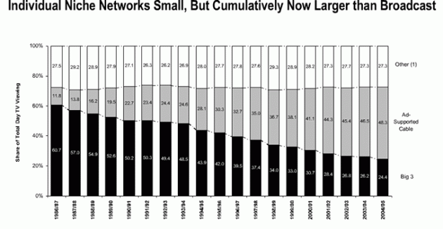 This is a double-whammy trend. It is negative because the audience for something (and corresponding revenue) will be less than what the most popular event on television will be, which partially explains the cachet television still has over its online brethren.