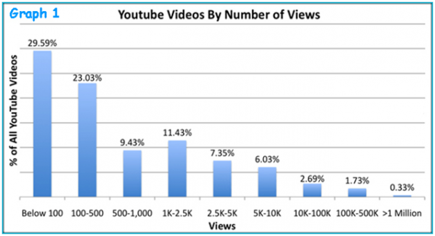 Ultimately, overall consumption of media will increase but hits become less frequent and each hit will become more niche. The stats support this hypothesis, despite YouTube’s aggregate size and macro-level success, each clip’s average viewership shows that regardless of whether the video is user-generated, premium or super-premium (for a definition of the differences click here), on average:
