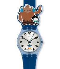 Yeah, guys! Do you like Yetis? Penguin things? Vancouver? Well today is your lucky day because we’re giving away one sexy Swatch watch commemorating the upcoming 2010 Vancouver Olympics.