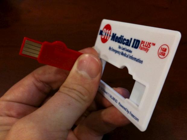 The 911 Medical ID card is available for $40. There’s also a new 911 Medical ID Medallion that can be worn around the neck and has 2GB of built-in storage for the same price.