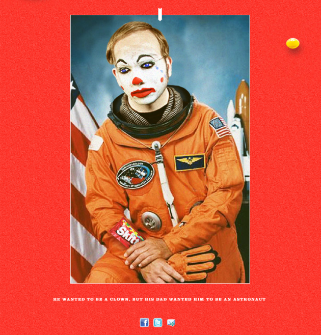 Titled “Experience The Rainbow,” Skittles.com is now a never-ending (it auto-refreshes to keep going as you scroll down) page of trippy, odd, and colorful images. For example, the first image is a clown dressed as an astronaut. As you keep scrolling down, you get a mixture of this weird stuff alongside fairly clever marketing and statistics for the candy. As a weird sumo wrestling graphic shows, Skittles currently has over 3,600,000 fans on Facebook, but only 272 followers on Twitter (because they just started their Twitter account yesterday along with this website).