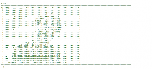 The wackiness even goes so far as to include a bunch of ASCII art images in the HTML source code for the page.