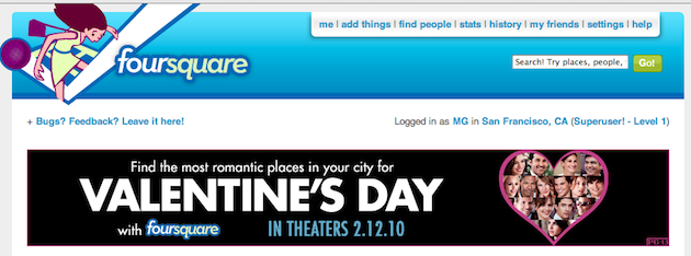 While Zagat is an obvious partner thanks to its restaurant recommendations, the entertainment partnership appeal may not be immediately apparent. But as you can see on the Foursquare page for the movie Valentine’s Day, those promoting the movie have added 50 “Romantic Tips” around the cities that the movie takes place in, New York City, San Francisco, Chicago, Los Angeles, and Boston. Any Foursquare user that checks-in at one of these places will unlock a special badge for the movie.