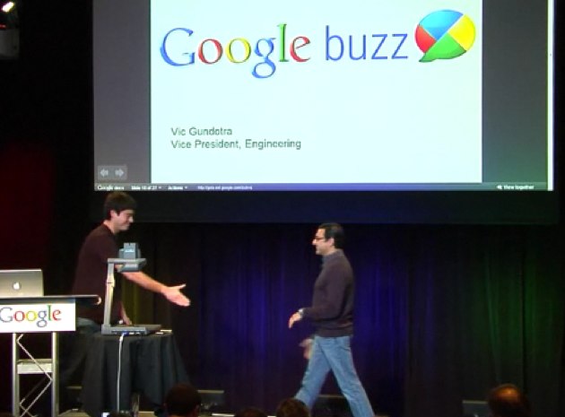 Gundotra: If you liked what Todd just showed you – I think you’re going to love the things that take Buzz beyond Gmail. The early web had millions and millions of web pages. Google realized that you could study the links with PageRank. Today, we’re seeing the same phenomenon with social expressions. We asked ourselves in the real world, how do we find relevancy? Think about your own phone conversations – it’s subliminal so you might not realize it: You ask someone: Where you at — Location.