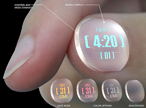 Look at this thing: it’s supposed to be a concept watch by Napoleon Merana, Steffen Schubert and David Takacs for a series called Timex 2154: The Future of Time. First, I doubt we’ll all survive until 2154 and if we do we’ll all be living in skin huts out on the tundra and second what happens if you bit your fingernails. Do you get shocked? Do you have to go to the drug store for another Timex Fingernail Watch?