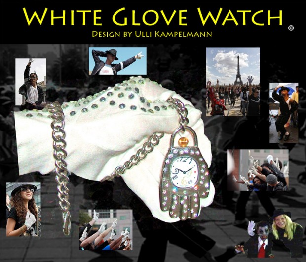 He left this stupid Michael Jackson glove watch for freaking $149 (act now and get a stupid free glove) on the carpet