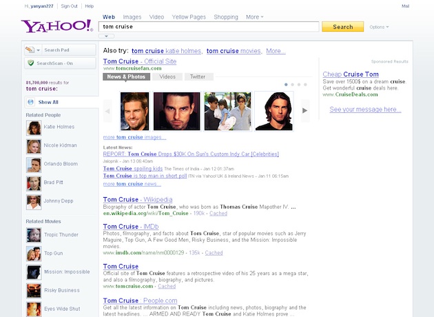 - More search powered things across all of Yahoo. Like Yahoo Mail.
