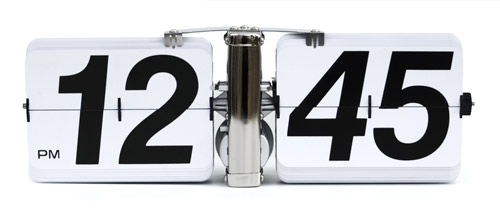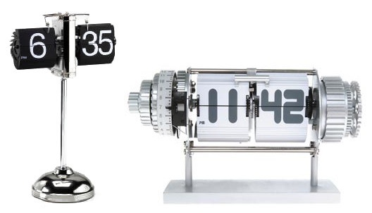 Retro chrome stuff is in demand here in Seattle. It seems like everyone is trying to establish their home as some sort of shrine to “Mad Men.” I even caved and bought this awesome projector screen — trouble is, most of this stuff is super expensive. And one thing I’ve always wanted but have never seemed to find at a decent price is a retro-style clock with the little flipping cards. Well, a commenter over at this AT post pointed me in the right direction and now I’m in agony trying to decide which one I want.