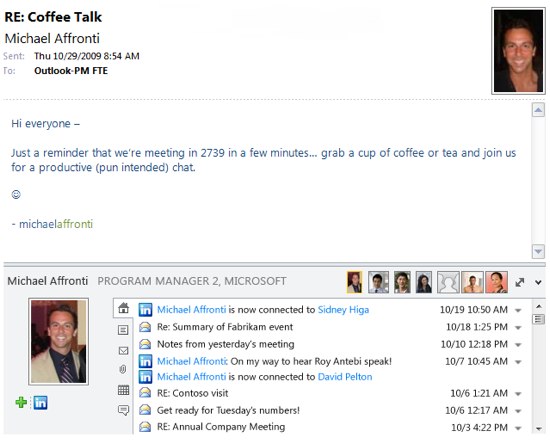 While a lot of people will appreciate the ability to see status updates from and interact with friends from multiple social networking services straight from their Outlook application, I have a feeling their managers and their employers’ IT departments will be far less enthusiastic about Social Connector.
