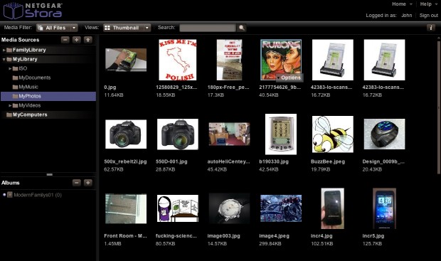 First, the drive appears on your computer as a Windows Share, DLNA, and UPnP-compatible storage location. It is literally as plug and play as you get. If you want to get fancy, however, you need to create a login. This will then place the drive on the Internet, allowing you to browse and share files with anyone in the world. For example, you can stick your collection of photos on the drive to share with your family or you can stick on important files that you can then play or download remotely. The Stora has a built-in web interface that is quite robust and useful and, more importantly, it’s quite fast. The software comes from HipServ, a company that has produced web solutions for other hard drive OEMs including Iomega.