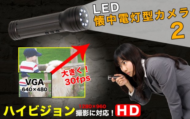 It looks like Tokyo-based acessory maker Thanko is trying to carve out a new niche for themselves, spy gadgets (apart from insane USB gadgets). The newest addition to their spy equipment lineup is the LED Spy Light HD [JP], an LED flashlight that records video in HD. Needless to say, the device lets you shoot photos, too.