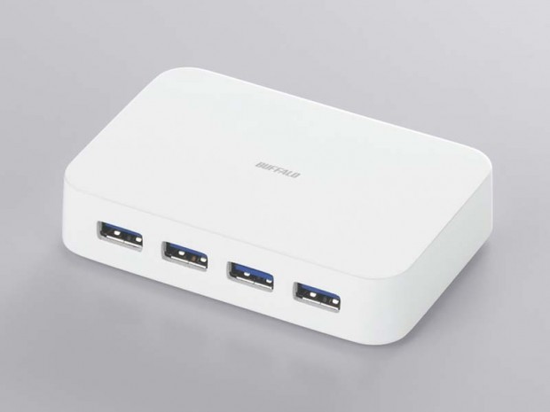 The BSH4A03U3 will be available in white and black. It will work with Windows XP, 7, Vista and Mac OS X 10.4. Buffalo says the port is backwards compatible with USB 1.1 and USB 2.0, promising a (theoretical) data transfer speed of up to 5Gbps for 3.0. The 58g-device can operate as both a bus powered or self powered hub.