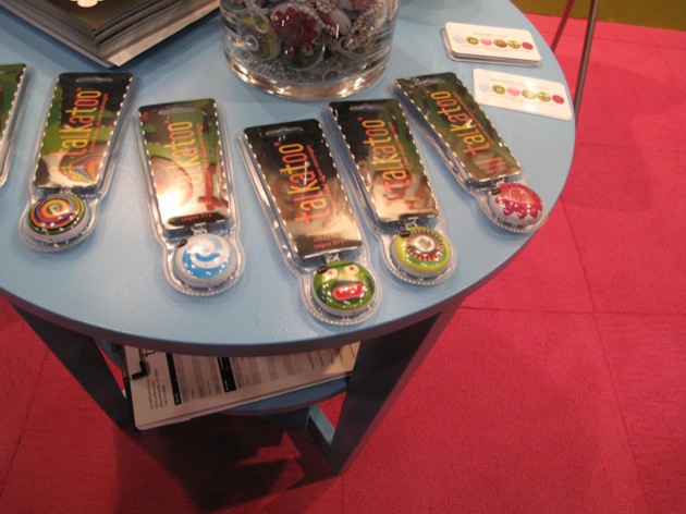 I just got back from the New York Toy Fair and saw quite a few great items, including this clever little thing called the Talkatoo. It’s a little tag that can record your voice and then attach to your wee one’s backpack or bag. When your kid is upset at Day Care or on a five year journey in the Antarctic, they can simply press the button and hear your soothing voice.