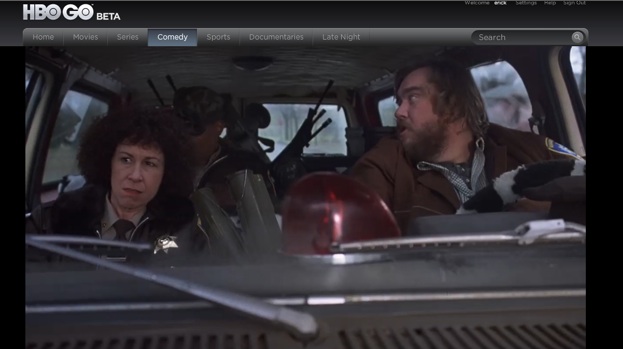 The site itself is well-designed, image heavy with lots of entry points. You are greeted with a slideshow view of ten shows and movies on heavy rotation, including the movie Taken, HBO Series Big Love and The Wire, and a Dennis Miller special. If you have HBO, you can’t really avoid any of these shows, so nothing special there except that you can stream it anywhere on your laptop. Tabs across the top allow you to explore deeper into movies, series, comedy, sports, documentaries, and “late night” (aka, HBO’s hard-hitting sex documentary series like Real Sex). Everything is done in Flash, which makes it a beautiful experience, but it won’t be accessible on an iPad or iPhone without converting the site into an app
