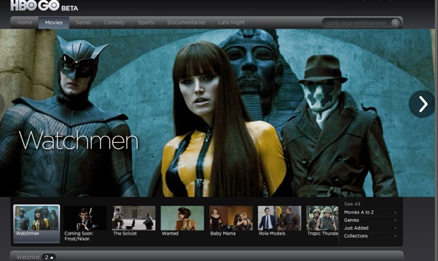The videos play decently and you can watch in HD, but if I wasn’t already paying for HBO I certainly wouldn’t pay for access to this site. The choice of shows and movies is just not that great. You can watch every episode of The Wire, and the final season of The Sopranos, but not one episode of Curb Your Enthusiasm. You get a lot more in your cable subscription, especially if you get multiple HBO channels. The on-demand option is great, but essentially HBO Go is competing with much broader array of choices on the TV which can also be made on-demand through a DVR. There are some movies like The Watchmen and Taken, which I think I’ve already seen three times each this month on TV, and a spattering of older archived movies like Canadian Bacon, but for the most part the selection is worse than what you get on Netflix via its streaming option. I’m not sure I want to see The Chumscrubber in HD.