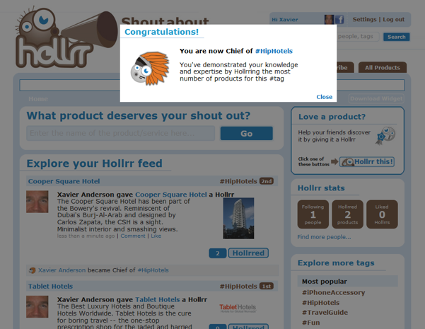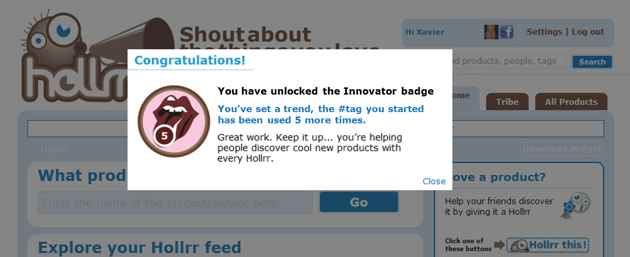The badge strategy may be a good idea, but Hollrr isn’t the only site using them to entice users — GetGlue is a recommendation site that also prominently includes a similar badge feature, and they also integrate the ‘Mayor’ concept in the form of product Gurus.